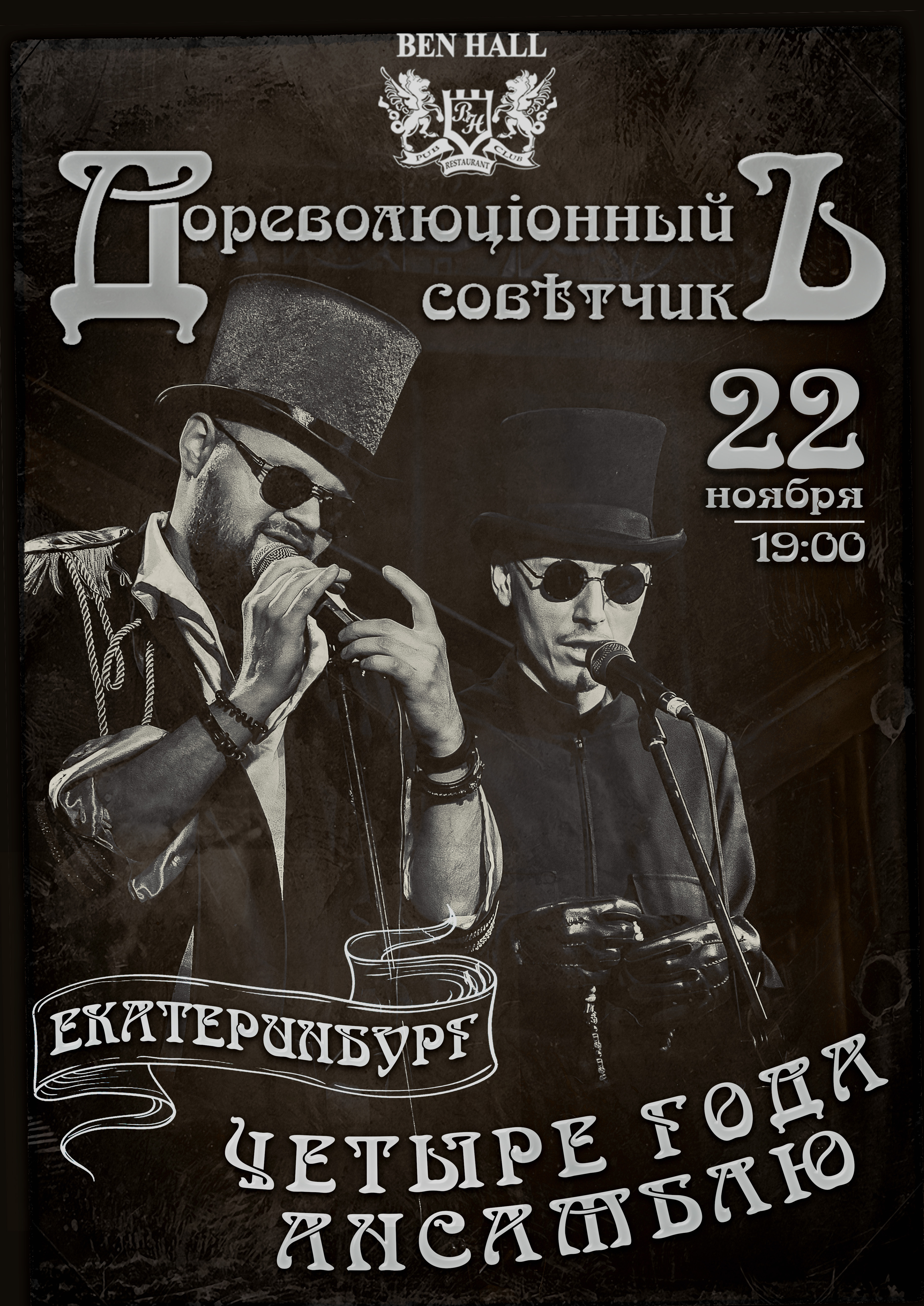 За 4 года основанія ансамбль сотрясъ стѣны не одного уѣзднаго и столичнаго варьете и неистовый кутежъ въ перемешку съ обволакивающимъ декадансомъ вновь стучится въ сердца куртуазныхъ франтовъ и свѣтскихъ львицъ! Симъ оповѣщаемъ о нашемъ куртуазномъ дѣйствѣ, что состоится 22 ноября впервые въ варьете BEN HALL въ Екатеринбурге. Ансамбль въ честь своего юбилея въ небольшомъ, но гордомъ составѣ посѣтитъ впервые города Пермь, Екатеринбургъ, Омскъ, Челябинскъ, Уфу и Нижній Новгородъ.